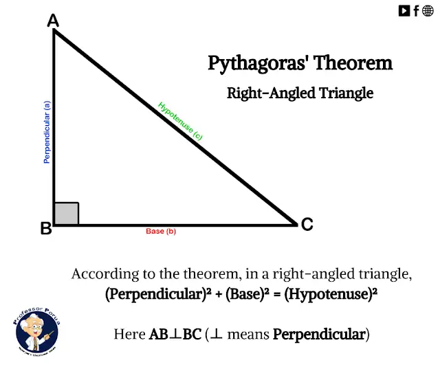 (Hypotenuse)² = (Perpendicular)² + (Base)²